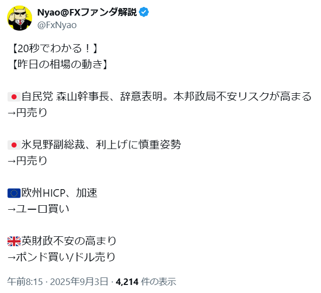 「ファンダの勉強してるけど どうやってトレードに 活かせばいいか分からない」 とお悩みの方へ。 ご安心ください。 私、Nyaoが、 普段のトレードで ファンダを使って どのように 利益を生み出しているのか? そのトレード手法を 簡単に!わかりやすく! 解説することにしました! 詳しくはこちらから! ※その他、YouTubeメンバーシップへの登録はこちらから