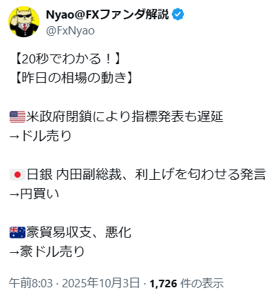 「ファンダの勉強してるけど どうやってトレードに 活かせばいいか分からない」 とお悩みの方へ。 ご安心ください。 私、Nyaoが、 普段のトレードで ファンダを使って どのように 利益を生み出しているのか? そのトレード手法を 簡単に!わかりやすく! 解説することにしました! 詳しくはこちらから! ※その他、YouTubeメンバーシップへの登録はこちらから