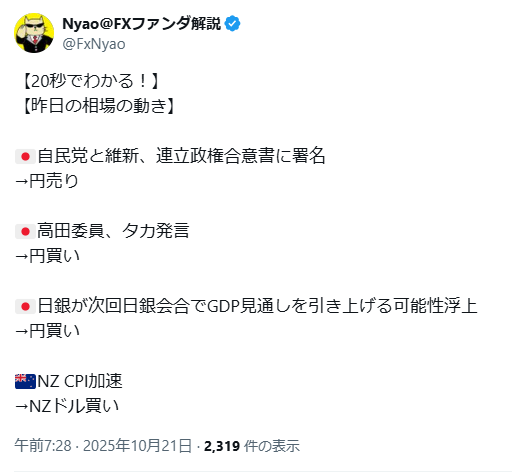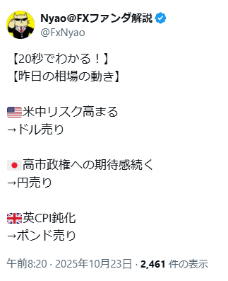 5分で読める今週のファンダ(25’10/20週)