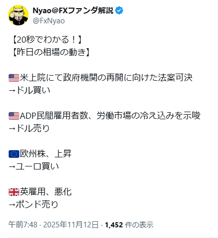 「ファンダの勉強してるけど どうやってトレードに 活かせばいいか分からない」 とお悩みの方へ。 ご安心ください。 私、Nyaoが、 普段のトレードで ファンダを使って どのように 利益を生み出しているのか? そのトレード手法を 簡単に!わかりやすく! 解説することにしました! 詳しくはこちらから! ※その他、YouTubeメンバーシップへの登録はこちらから