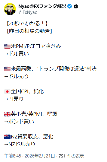 「ファンダの勉強してるけど どうやってトレードに 活かせばいいか分からない」 とお悩みの方へ。 ご安心ください。 私、Nyaoが、 普段のトレードで ファンダを使って どのように 利益を生み出しているのか? そのトレード手法を 簡単に!わかりやすく! 解説することにしました! 詳しくはこちらから! ※その他、YouTubeメンバーシップへの登録はこちらから